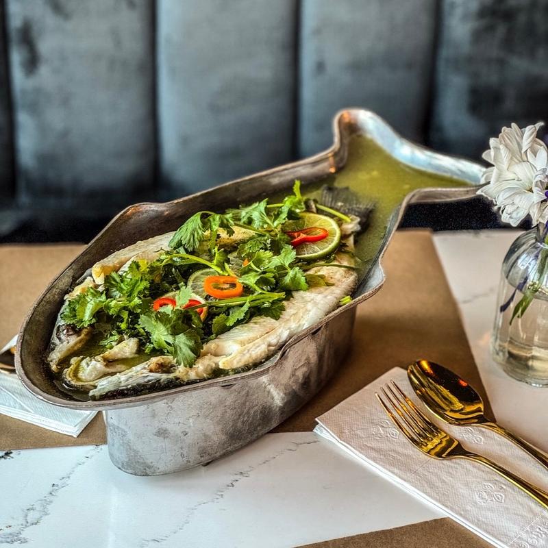 Steamed whole de-boned Branzino fish, chili, lime, cilantro, and culantro in chili lime broth. Served in a share-friendly portion size.